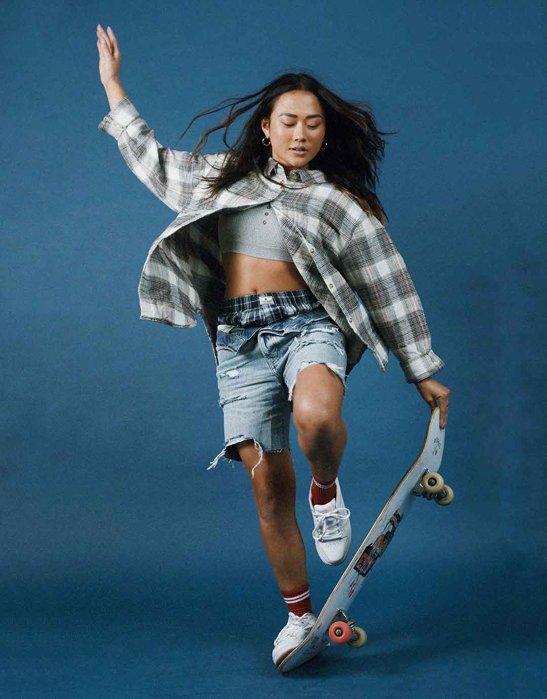 Look Two: Jean Shorts, Boxers, Bra, Plaid Shirt, Sock