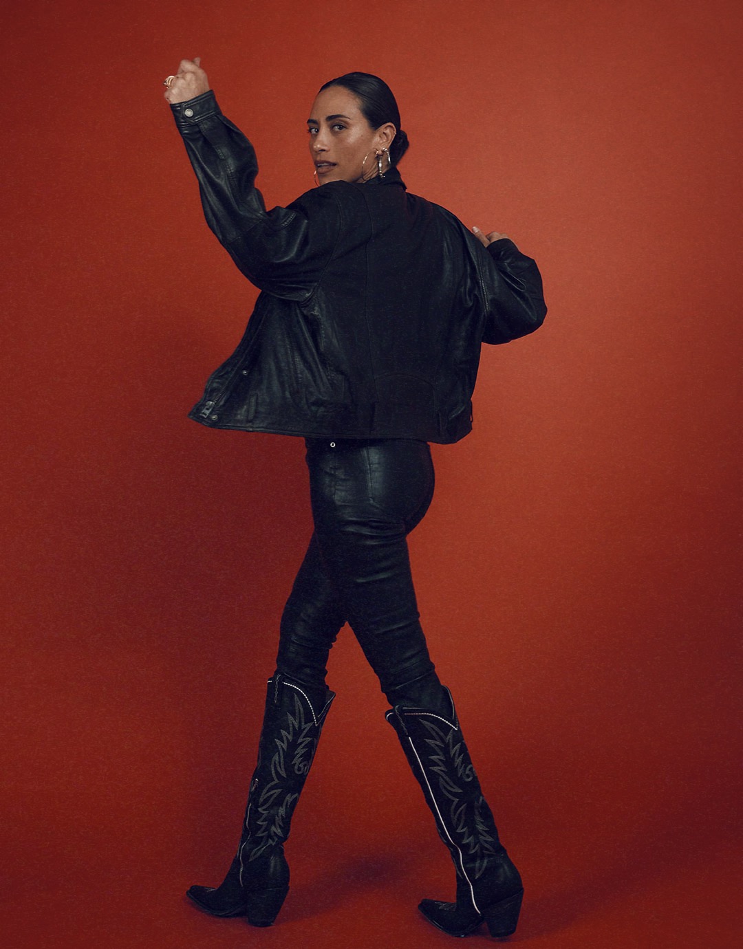 Look One: Leather Bomber Jacket, Leather High-Rise Skinny